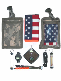 4. Friend or Foe ID Flag - Should you become lost or separated from your unit, when approuching friendly lines or a friendly patrol it's best to carry something that will quickly identify yourself as a "friend" and not a foe. And there's nothing more recognizable than to carry & wave a small 12 x 8 inch Amerian flag. Better to wave a small American flag then a "white flag" and risk being shot at and mistaken for a foe by your own troops. Ya know?